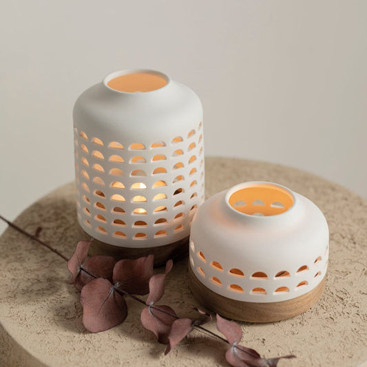 Rader Porcelain & Acacia Wood Lantern Set of 2