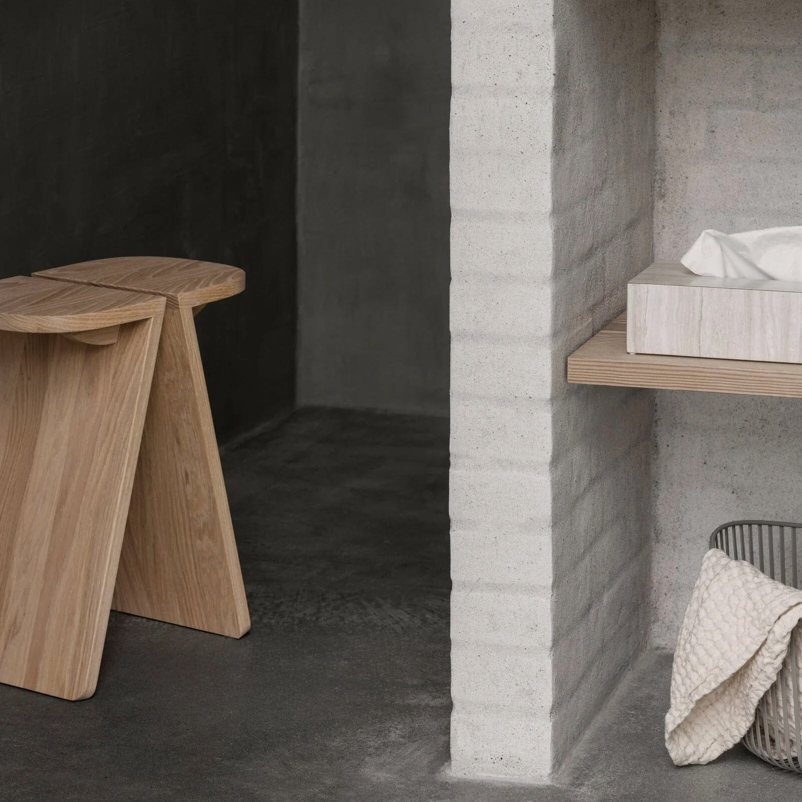 The Blomus AVIO oak stool features rounded shapes and a symmetrical form harmonizing with a statement of two haves make a whole. The name AVIO in Finnish means "married", and so this line is perfectly named for the two pieces joining to form one. The AVIO series, by Japanese designer Kazushige Miyake is made in Europe from FSC (Forest Stewardship Council) certified wood which insures environmental care and stewardship. Purposely designed and constructed to last a lifetime and become a family heirloom piece.