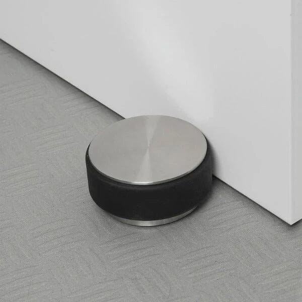 The appropriately named STOP stainless steel door stop by Blomus comes in two sizes and four finishes to both meet your door weight needs and match your decor. Its slip-resistant back meets the door and cushions any impact while its concealed hardware blends this door stop unobtrusively into your design.