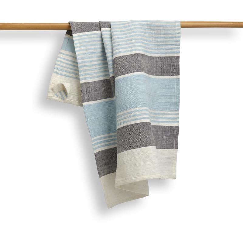 Remarkably soft, this attractive kitchen towel offers a distinct texture obtained from handspun yarn and showcases the splendor of hand-done weaves. Add a cozy, handmade touch to your kitchen with a handloom-woven kitchen towel made with low-impact dyes. Highly absorbent and washable, this kitchen towel is sturdy, durable and a practical way to reduce use of disposable paper towels. Features a loop for hanging. Packaged with a belly band and a hanger, it makes an excellent host or hostess gift.