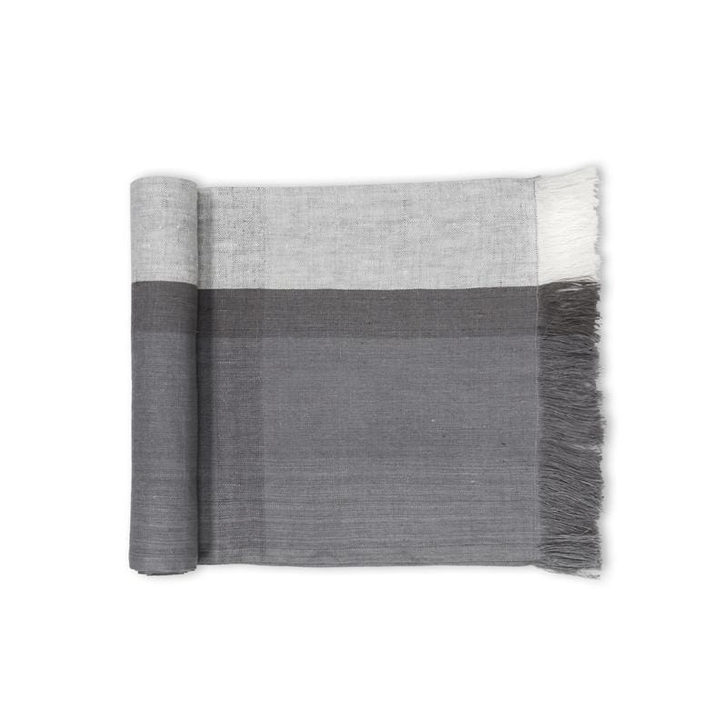 This handwoven linen runner is crafted using the natural fiber from the flax plant that is strong, durable and breathable. Highly absorbent, flax linen gets softer and more luxurious with use. Our linen runner is designed to create an interplay of colors. Each runner comes in a combination of three yarn colors that are hand dyed and then strung in a combination on the warp and weft. Hand weaving different thread colors into patterns is a much more laborious process than weaving with a single color, but is a valuable component, given the beauty of the final product. Dyed with Azo-free, low-impact dyes.