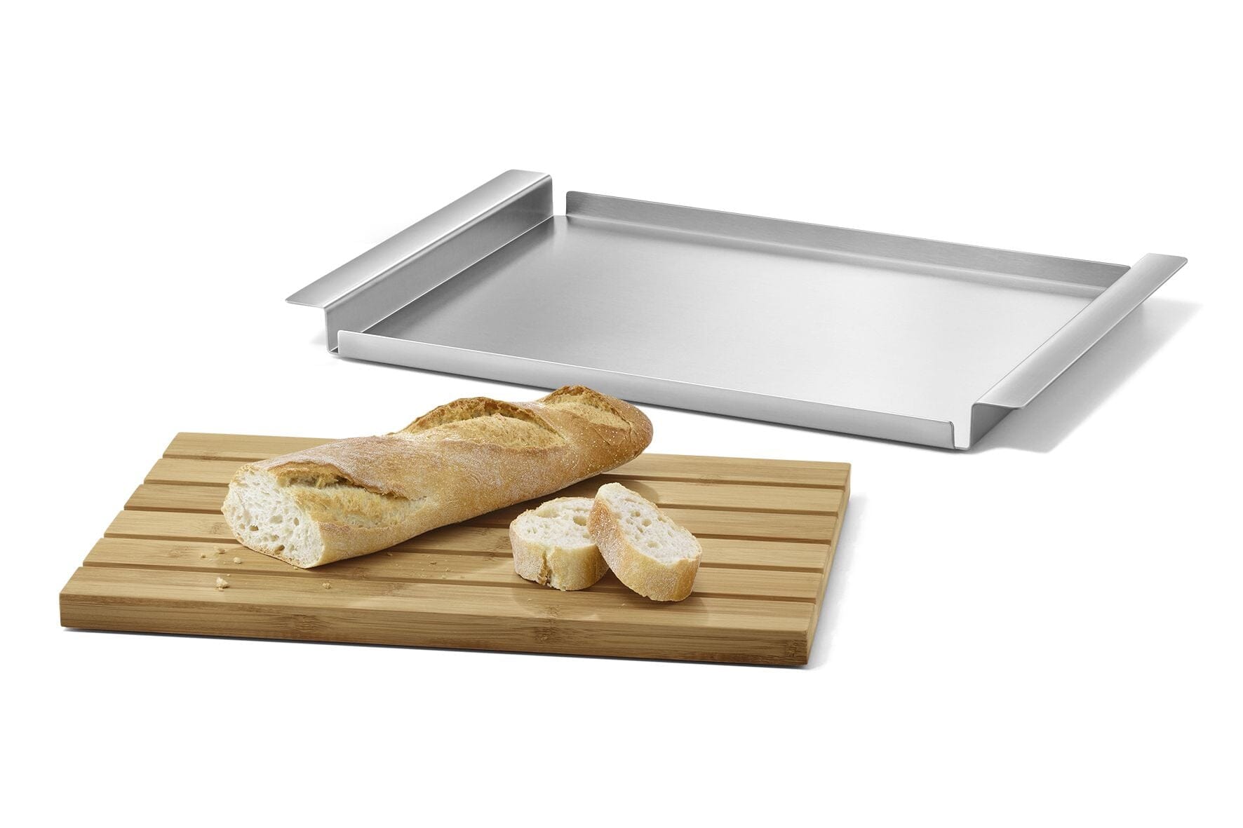 Elevate your kitchen with the Zack Panas Breadboard & Tray. Crafted with a removable bamboo cutting board and a matte brushed stainless steel tray with carrying handles, this product offers both functionality and style. Impress your guests with this sophisticated and eco-friendly addition to your culinary repertoire.