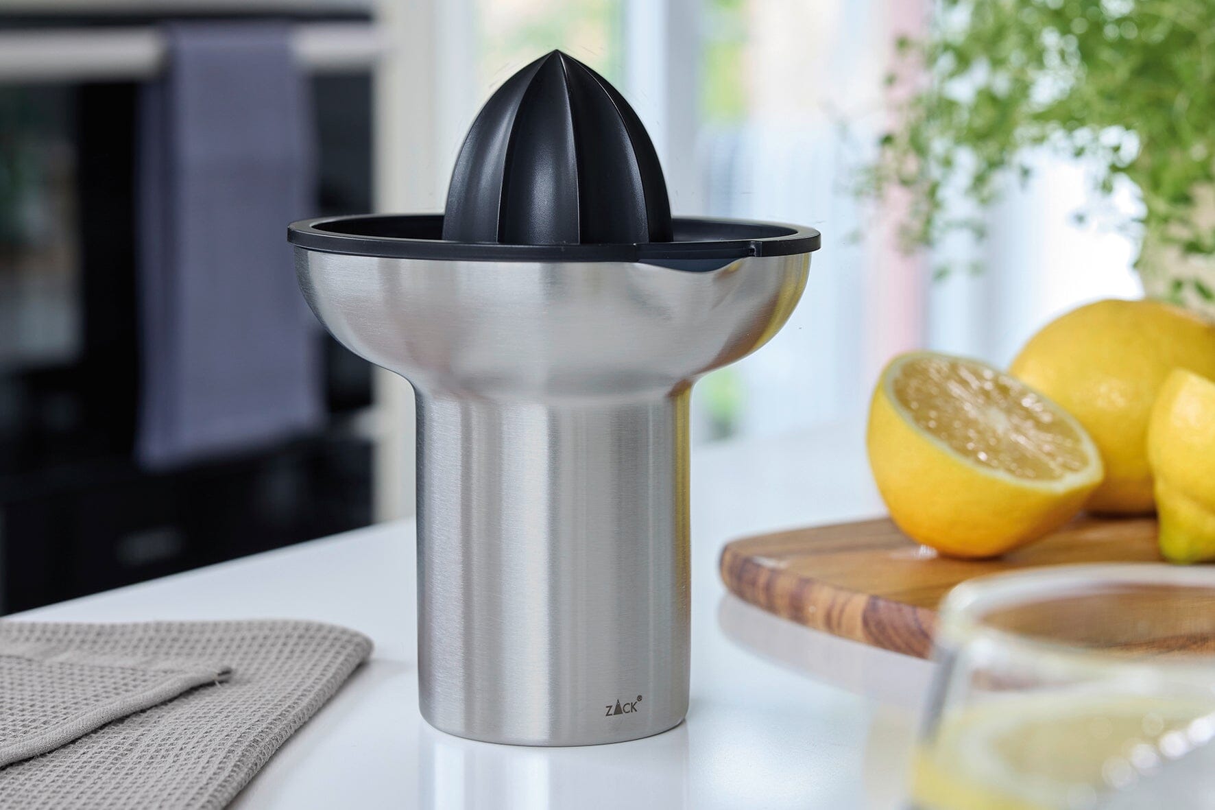 Zack Tavos Citrus Juicer, the pinnacle of luxury kitchen tools. Our countertop manual juicer features a sleek and practical design shaped for easy holding, with a large 350ml capacity and a precise pouring spout for effortless juice extraction. The seeds and pulp are filtered out, ensuring a pure and smooth juice every time. Crafted with an exclusive, matt brushed stainless steel surface, it is both functional and stylish. Elevate your morning routine with Tavos.