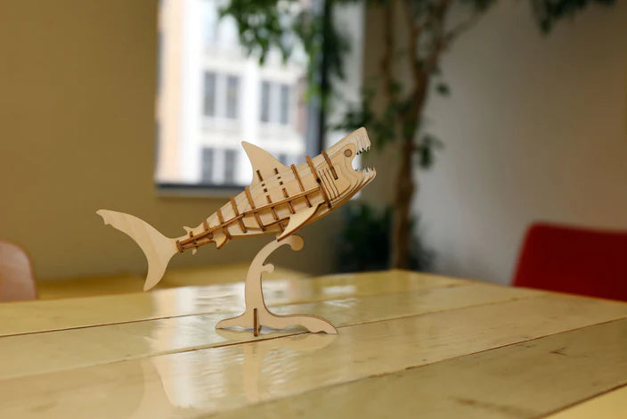 Experience a captivating journey into the wild without the need for scissors or glue with Kikkerland 3D wooden shark puzzles! Meticulously crafted for precision, these puzzles artfully bring animals to life, piece by piece. Suitable for all ages, these enchanting creations effortlessly infuse a touch of nature into your space. Immerse yourself in the joy of assembling your favorite creatures in stunning 3D detail!