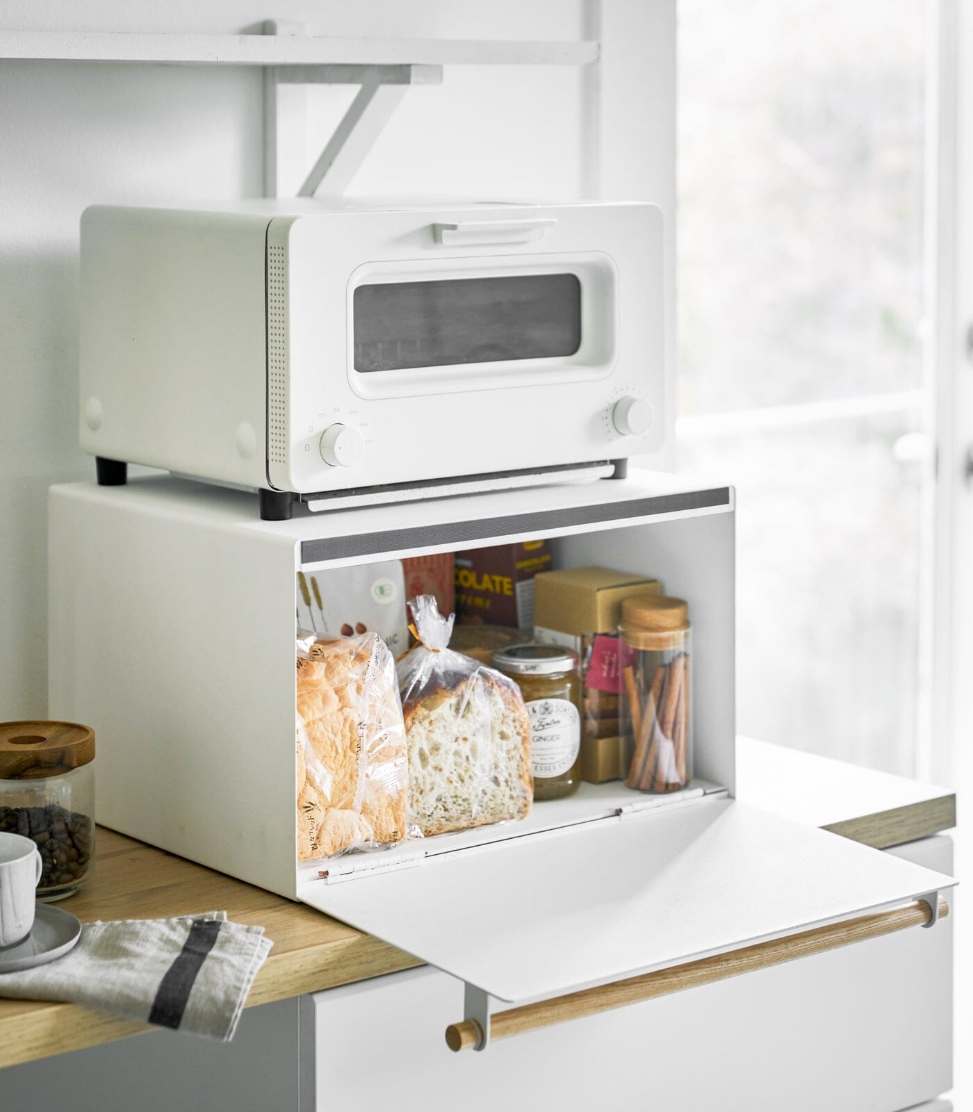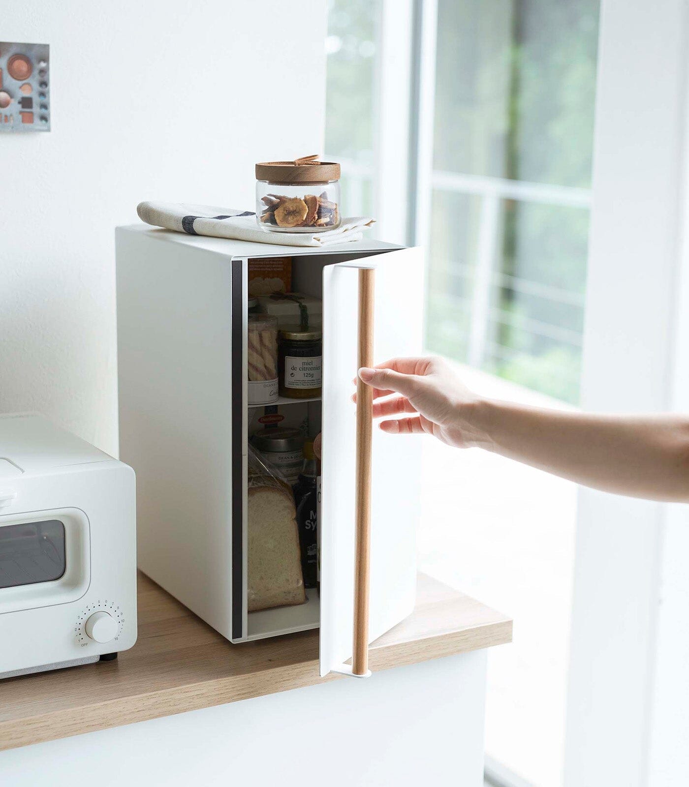 Yamazaki Steel Bread Box With Wooden Handle