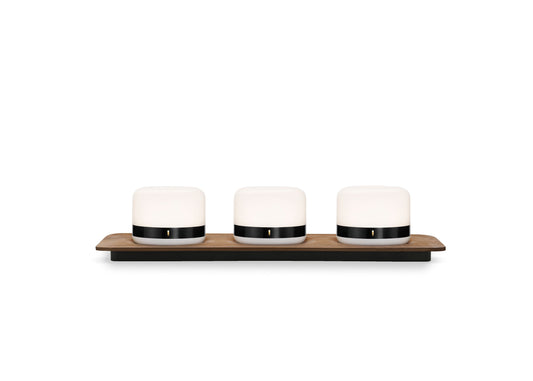 Luna Firefly Portable Frosted Tea Lights with Dark Bronze Band and White Oak Charging Tray