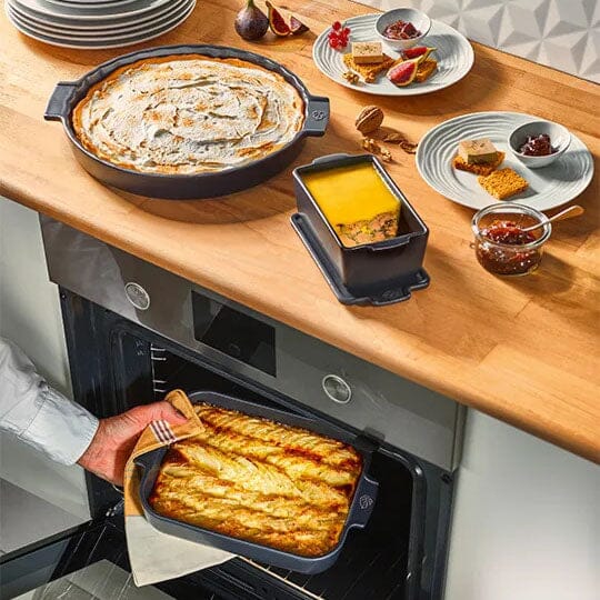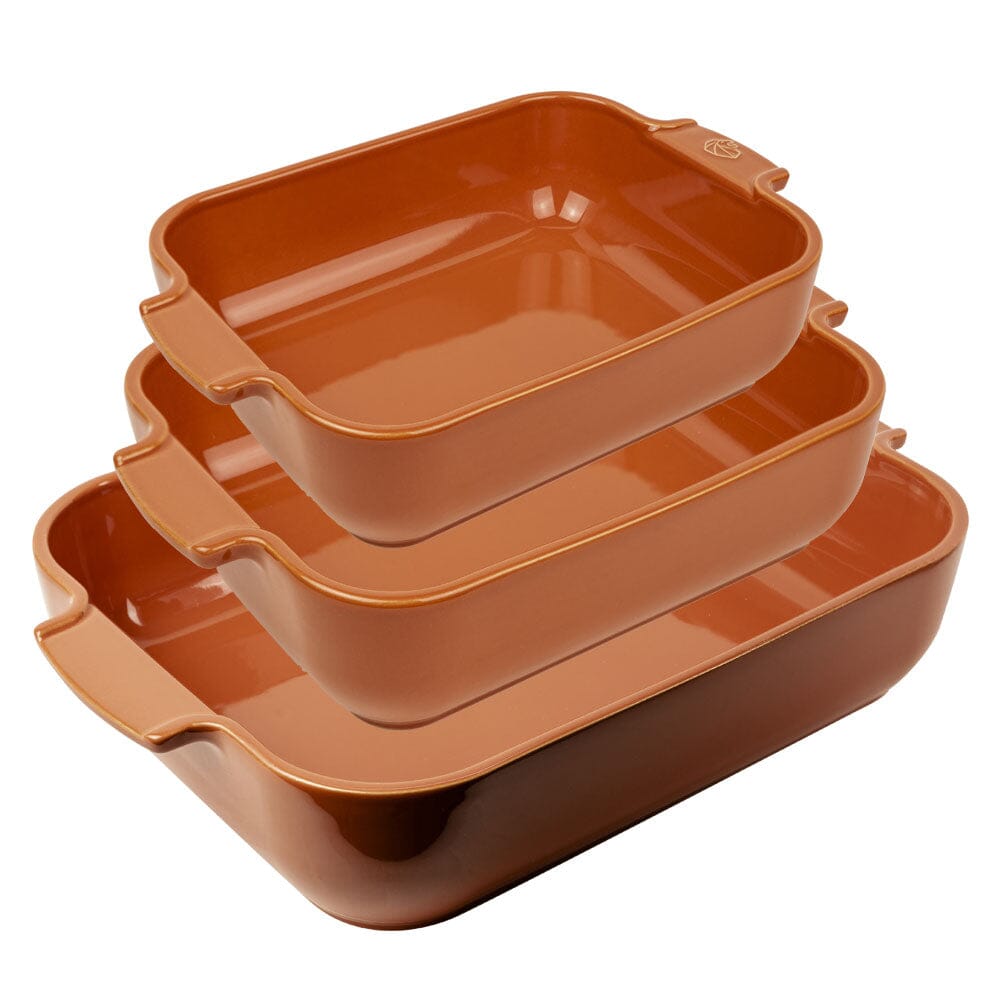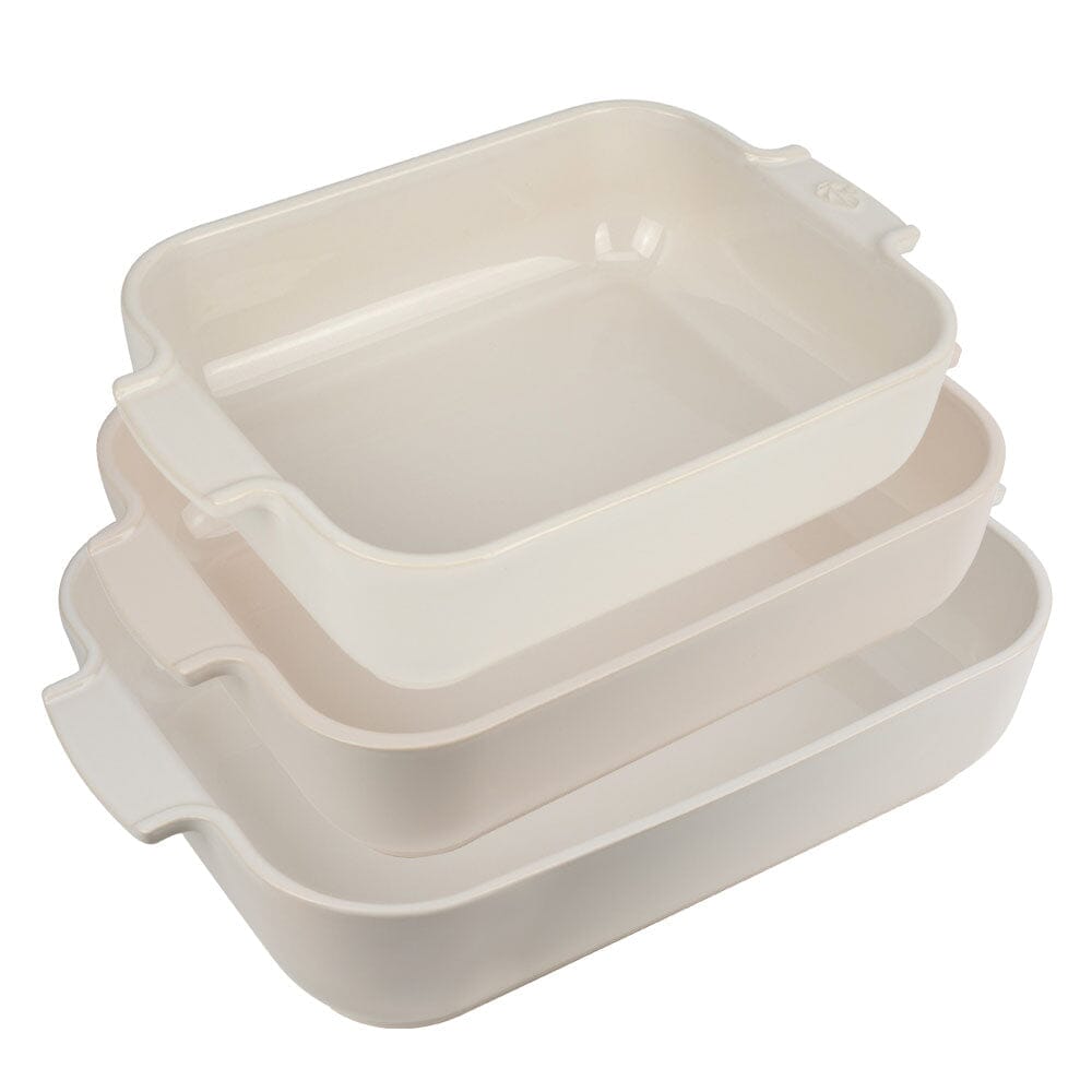 Peugeot baking dishes feature wide ridged handles for an easy grip, high edges for generous dishes, and rounded corners for easy cleaning. These rectangular shaped ceramic baking dishes are conveniently designed in nesting sizes, so no matter the size of your kitchen, you can cook and bake with excellence.