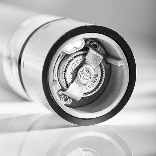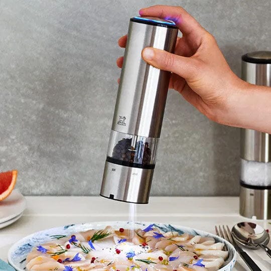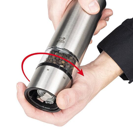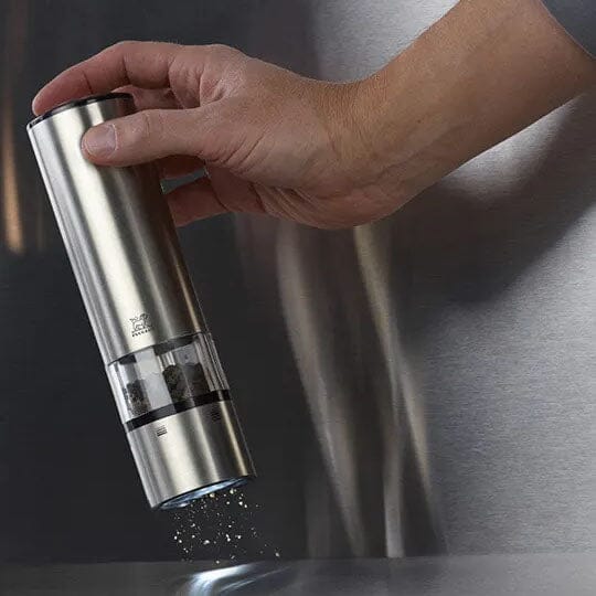 Peugeot Saveurs' line of Elis Sense electric salt & pepper mills are finely engineered from durable stainless steel and start grinding to perfection the moment you simultaneously touch the top and body. The u'Select mechanism gives you the freedom to select one of half a dozen different grind sizes, allowing you to easily season your food exactly the way you want it.