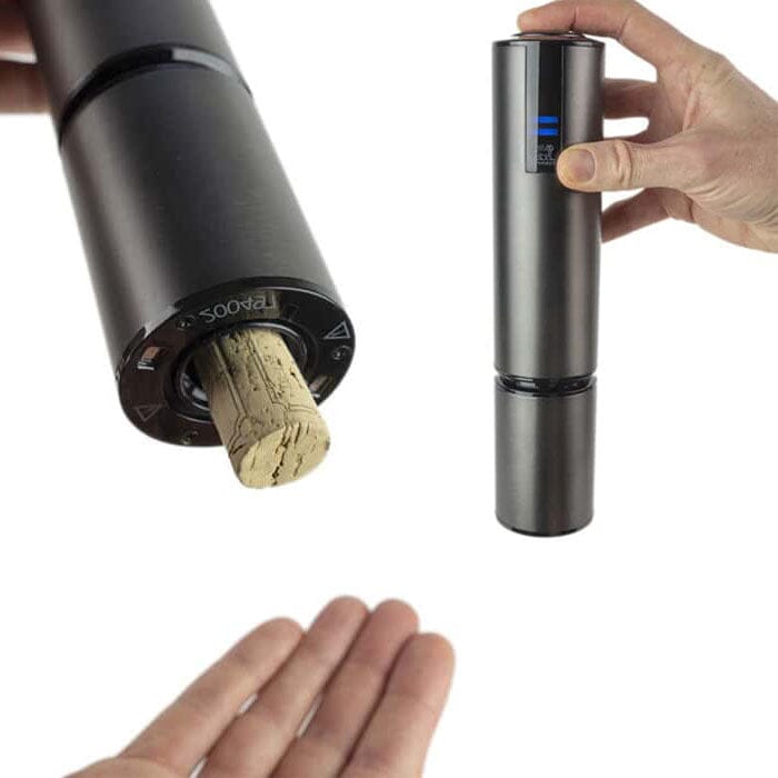 Perfect for parties or meditative evenings at home, this wine opener with a foil cutter will transform the way you enjoy your wine. To uncork your bottle, simply position the Elis Touch on the bottle's neck and press down. To remove the cork, press the button on the top of the unit and voilà! The Elis Touch is powerful, silent, and can uncork 40 bottles in a single charge.
