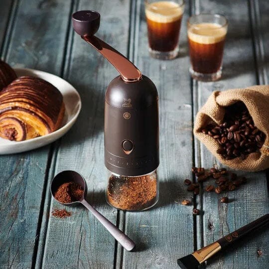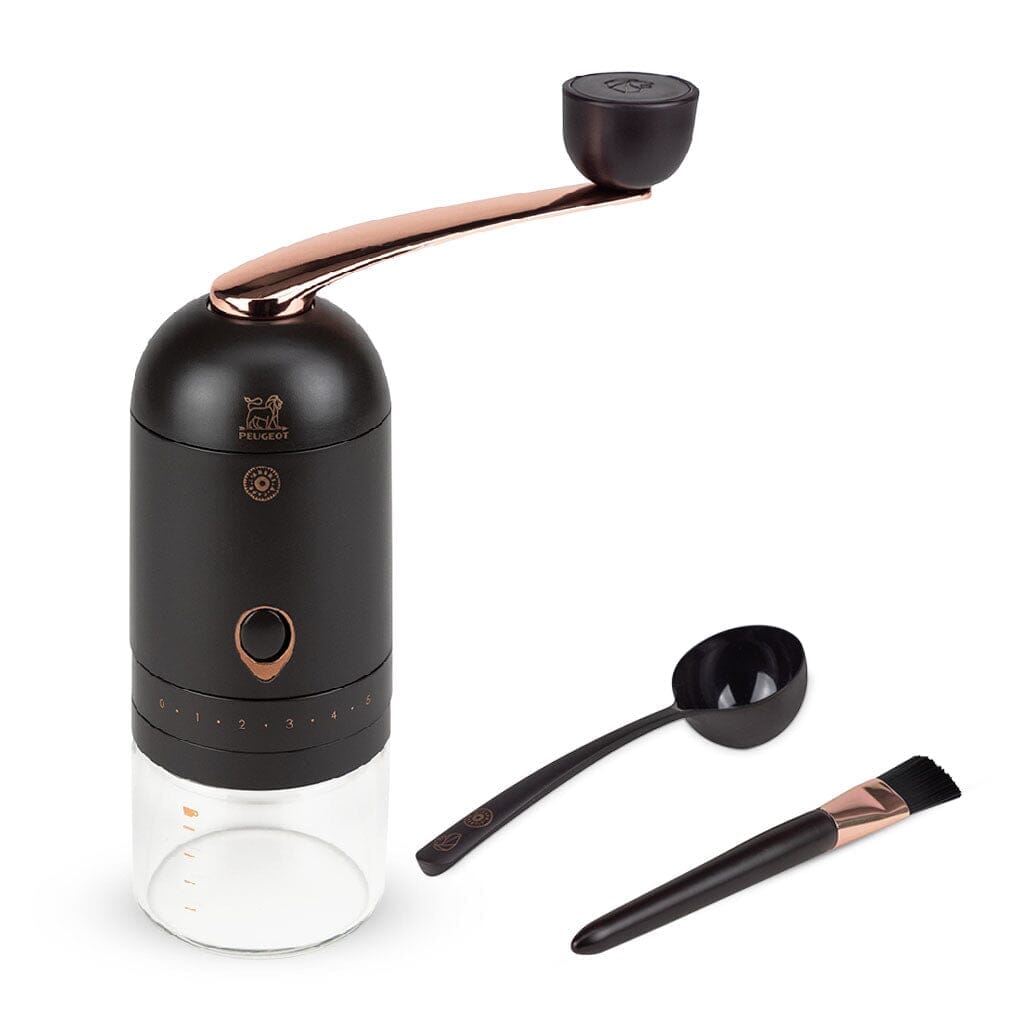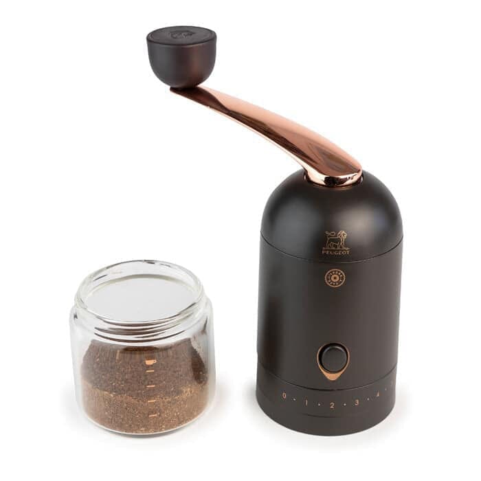 Peugeot Saveurs' L’Arbre à Café grinder combines Peugeot's nearly 200 years of knowledge and expertise with a passion for the perfect coffee that will never fade. The result is an artistically designed hand-cranked coffee grinder that allows you to finely and reproducibly grind enough for two cups with ease.