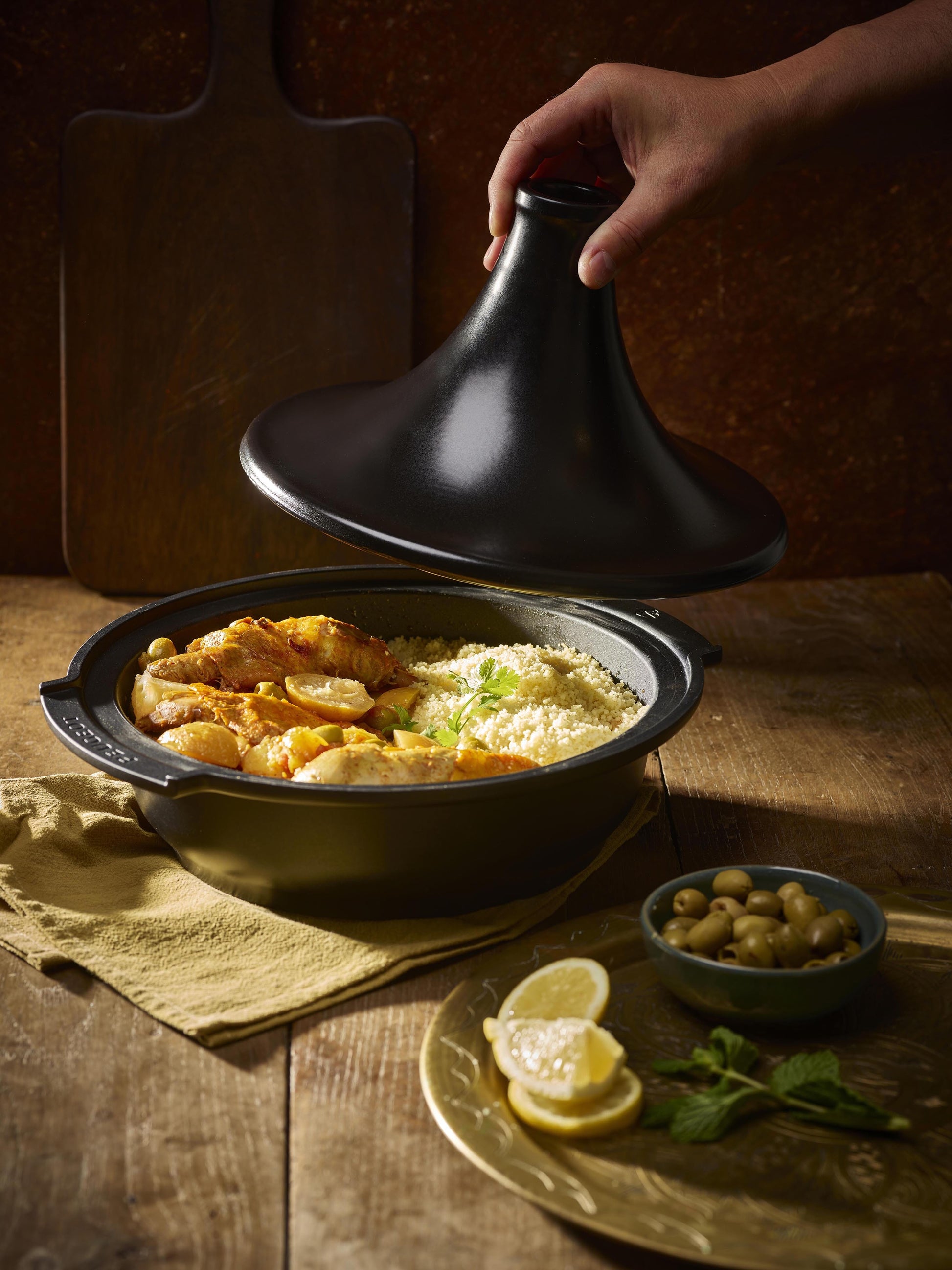 Discover the World of Tajine with Peugeot’s Atlas—a must-have for cooking enthusiasts and perfect for serving 6 to 8 guests. Made in France, this innovative tajine features a base crafted from 100% recycled aluminum for eco-friendly, lightweight performance and even heat distribution. The PFAs-free ceramic non-stick coating allows for healthy, low-fat cooking and effortless cleanup. Designed to sear, simmer, and impress, Atlas brings tradition and modern performance together beautifully.