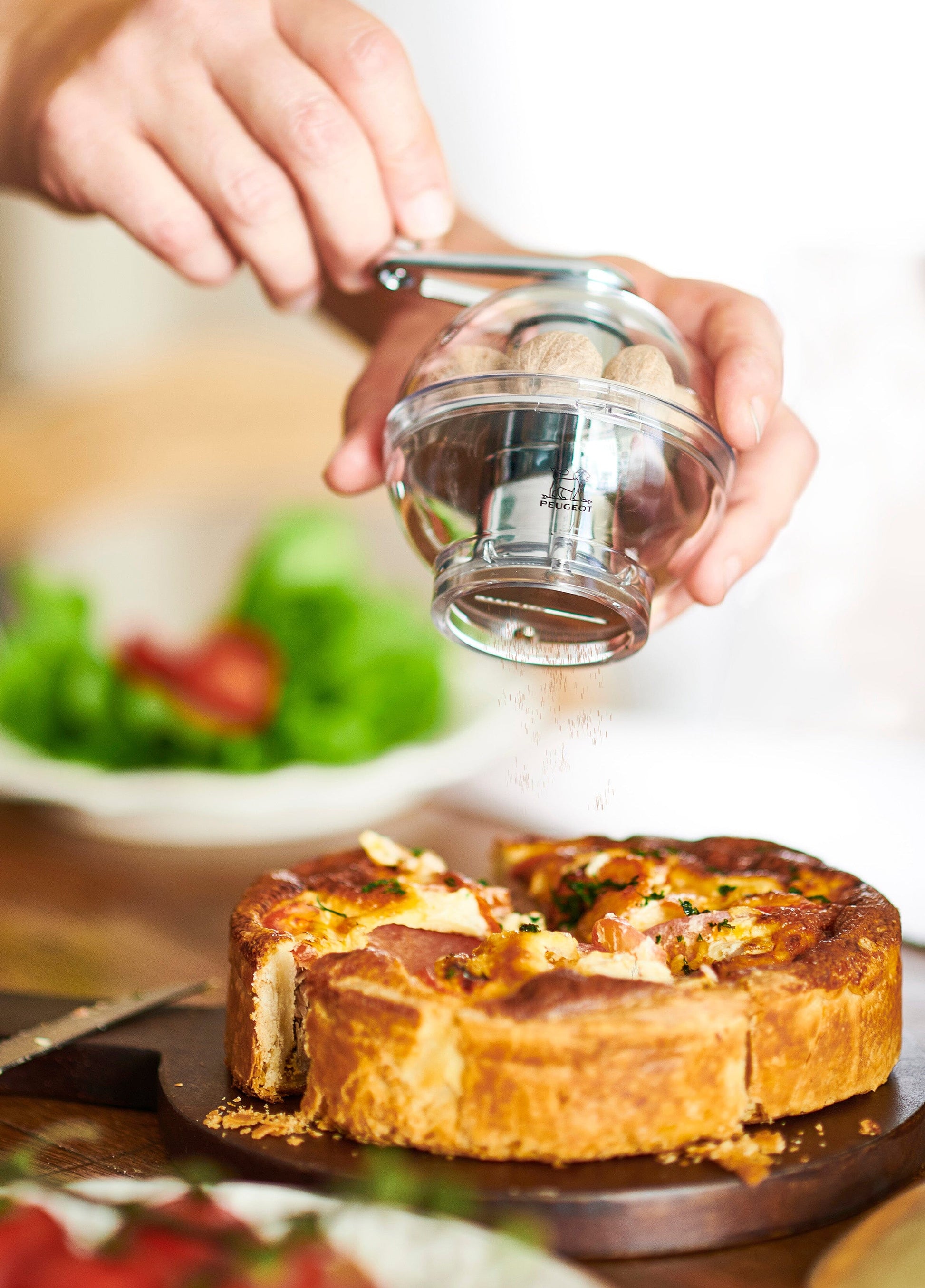 The Peugeot Saveurs Tidore acrylic nutmeg mill combines elegance and innovation to elevate your culinary creations. Its unique dual-action mechanism finely grates nutmeg with ease and precision, releasing rich, aromatic flavors without any risk to your fingers. Designed in a sleek, transparent shape reminiscent of a nutmeg, it holds 7 to 8 whole nutmegs, ensuring freshness and convenience. Perfect for chefs and enthusiasts seeking a refined touch, this mill transforms every dish with subtle, sophisticated spice.