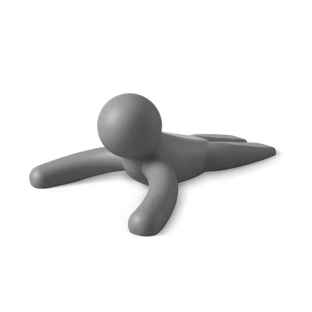 The Buddy Doorstop is a playful and practical tool featuring Umbra’s signature Buddy figurine. A charming addition to the Buddy Family, this imaginative door stopper gives the appearance that Buddy is stuck underneath the door while keeping it open. Made from soft-touch thermoplastic rubber, the Buddy Doorstop won't skid or scratch your floors and will securely hold the door in place.