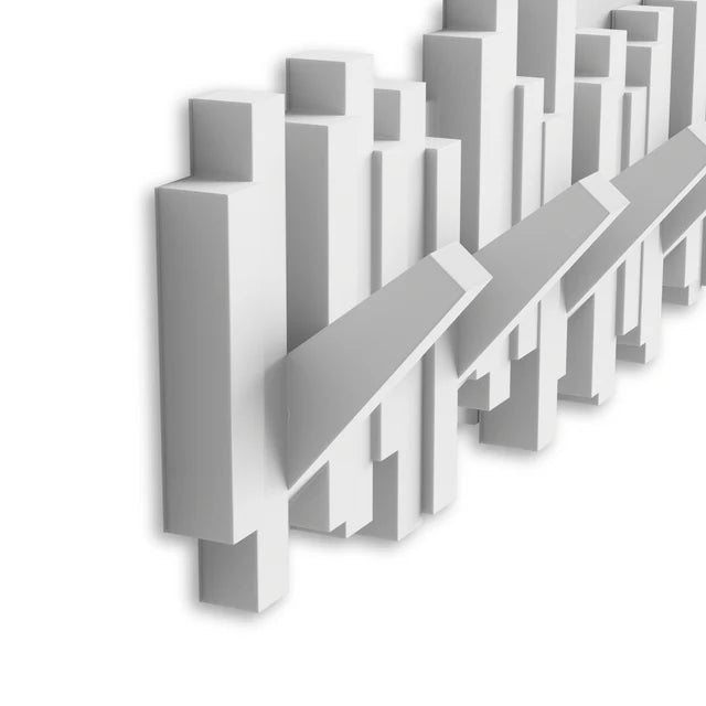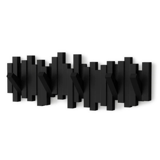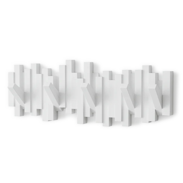 Sticks Multi Hook is a sculptural and functional wall coat rack that offers ample hanging space for your home, office, or dorm room. At first glance, Sticks appears as a modern piece of art, but it cleverly conceals five flip-down hooks that can be tucked away when not in use, creating a clean and seamless profile. Each flip-hook can hold up to 5 lbs., making it a sturdy and practical solution for keeping your space organized. Sticks comes with mounting hardware for easy and quick installation.