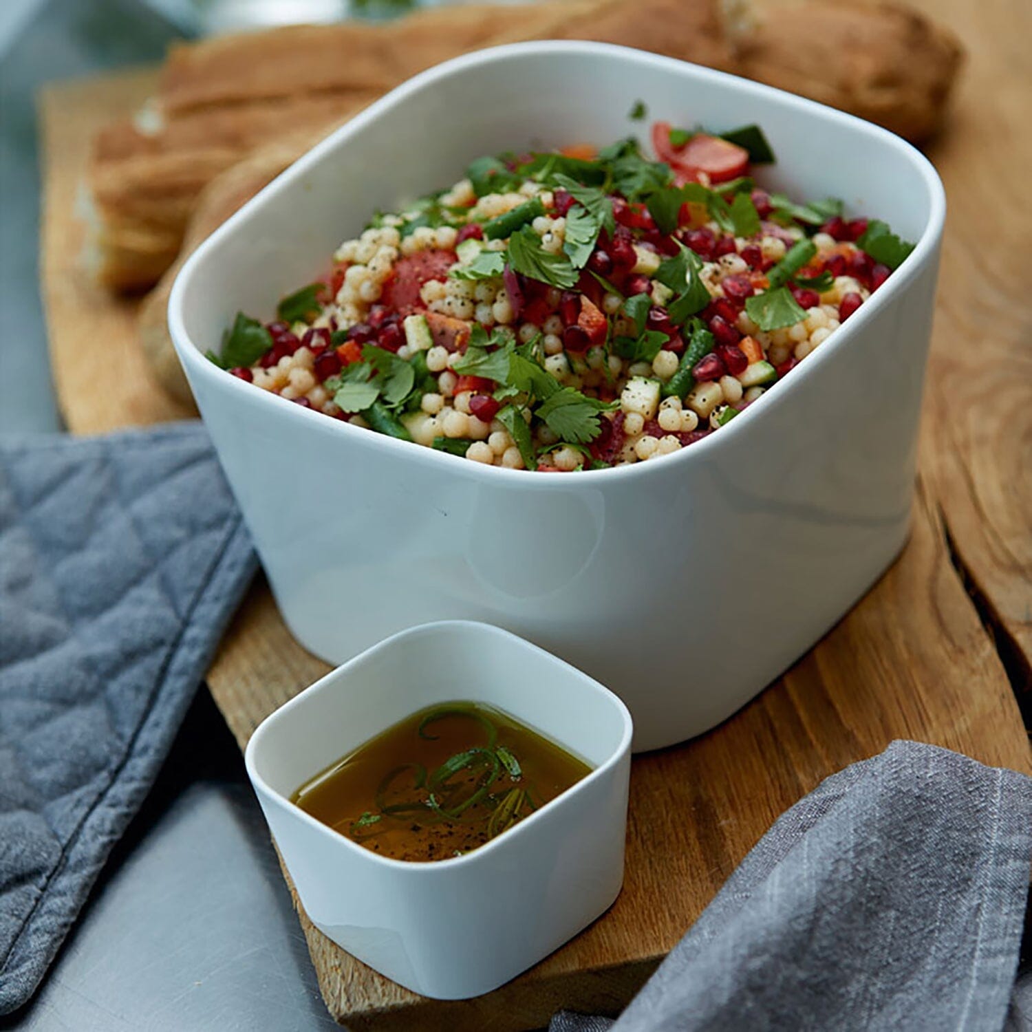 Rosti Modula rectangular dishes are made from reinforced porcelain providing both durability and modern design. They can withstand oven temperatures up to 350 degrees as well as thermal shock, meaning they can go from the freezer directly into the oven. They nestle perfectly inside each other, taking as little space in the kitchen as possible. The high sides and practical shape offer a wide range of uses, whether they require oven, microwave, or freezer.